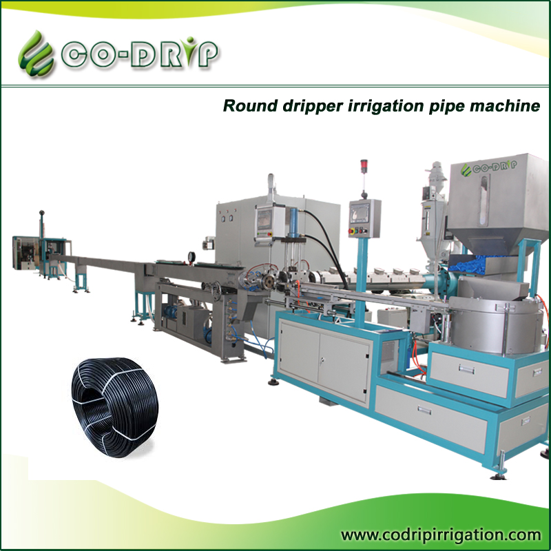 We manufacture Round Drip Irrigation Pipe Machine, that is what we often says Cylindrical dripper line machine, Line speed 80-120m/min.