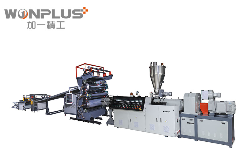 Equipment Composition: Conical twin screw extruder+ PVC sheet mould (T-shape die) +three calender+ cooling frame +hauler +cutter