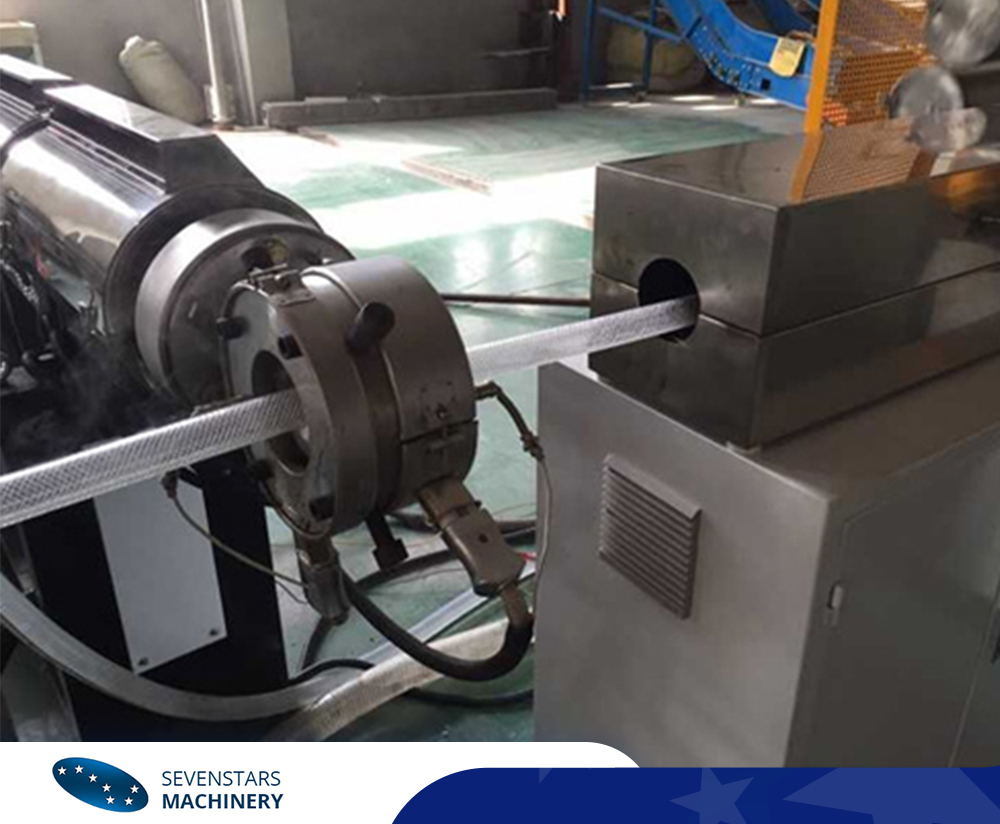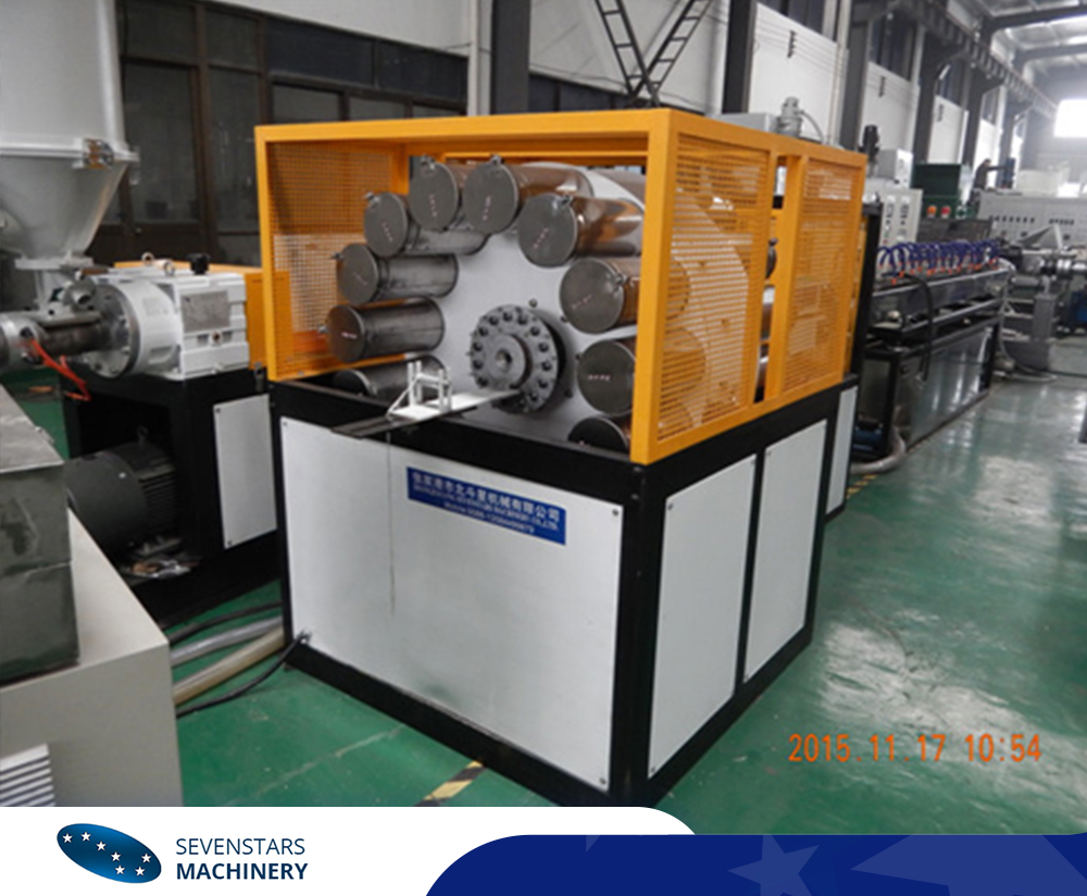 of the material vacuum shaping, constant temperature control, eliminating pipe stress adopting co-extrusion head to improve the tube with color line heavy extrusion volume, low temperature of melt, equal temperature of melt extensive material process range