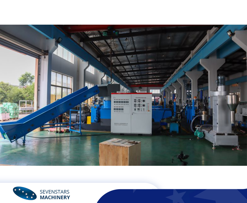 Sevenstars machinery have designed unique palletizing recycle production unit, which can recycle and produce final grain in succession. It can make denfified granules in advance. through compactor, thus improve the density of film, and delete the moisture under fine temperature control.