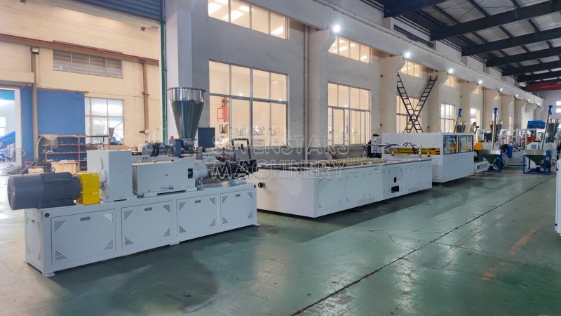 Our company successfully developed PVC wood-plastic formed plate production line, the product of wood –plastic foamed plate collects advantages of wood and plastic, it not only has natural wood face, but also conquers natural wood shortage, it has good processing ability which is similar to wood; it can be process by saw , ingot, and dig, just use wood tools, the force is much better than normal wood, it has physical characteristics, such as resistant to compression, resistance to impact and others, which are mimilar to hard wood, and its durable function is clearly better than normal wood, wood-plastic material and the products can be resistance strong acid and alkali, water proof, corrosion resistance, besides, germ can not breed on it, its not motheaten, it can be agin resistance, static electricity resistance , flame retardant , the product can be used in making building template, toy board tray, package box, sleeper , outdoor floor , railings, garden chair and other outdoor facilities, indicating plate, circulating box, roof beam etc