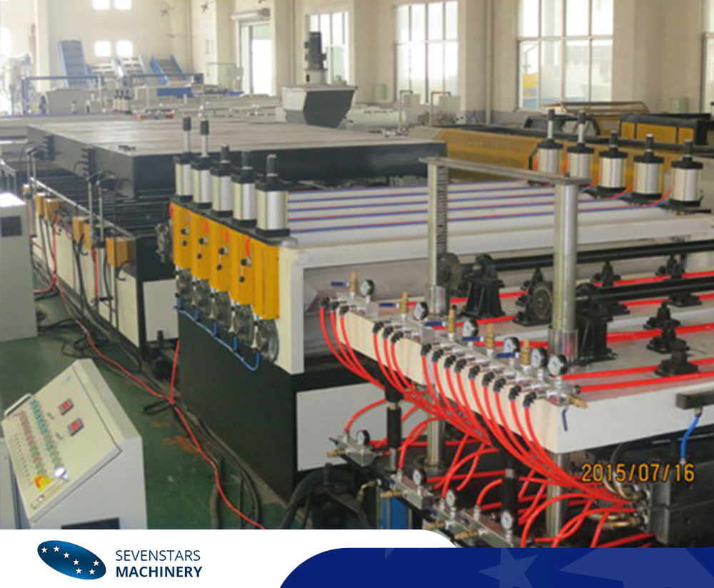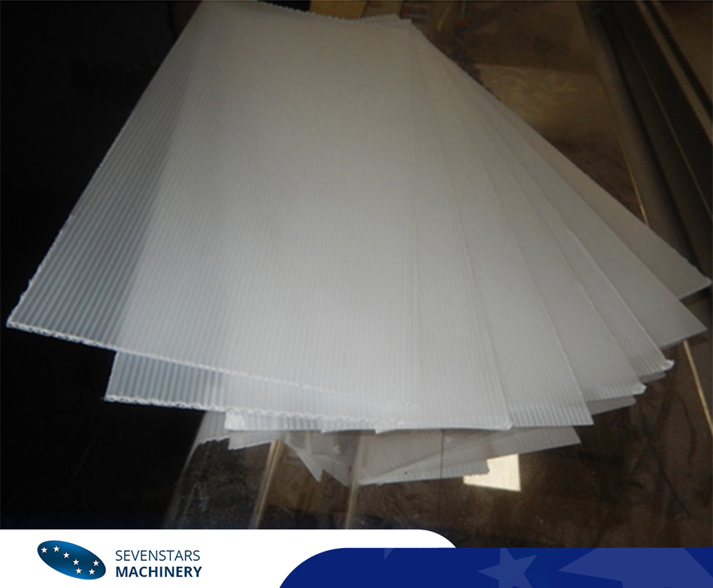 The equipment is application to produce PC, PP, PE hollow profile beard, the products is used for building, decorating, advertisement laying, road noise isolation and packing, PP hollow profile board can instead of carton which have feature like light weight, high strengthen, width of board is 1220-3000mm and thickness is 2-16mm