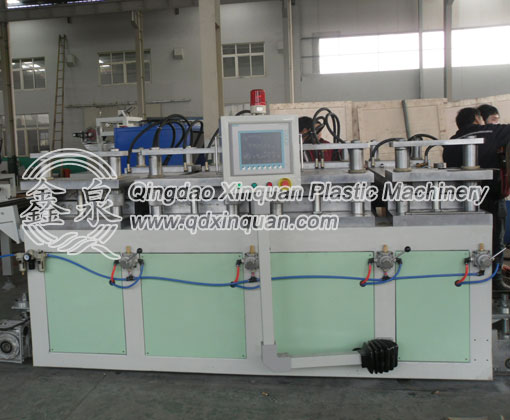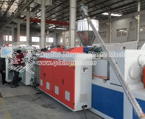 This production line adopts special designed SJZ80 conical twin screw extruder, uses DC speed regulator, imported world famous brand temperature controller, has the advantages of large speed regulating scope, accurate temperature control, easy and reliable operation. The auxiliary units consist of vacuum foamed stand, haul-off, cutting machine and stacker, etc. It is equipped with large forced cooling device to ensure good foamed result. The caterpillar type haul-off adopts précised reduction and frequency inverter, features reasonable structure; large hauling force and stable haul off. The cutting machine has the characteristics of reliable and precise working, accurate cutting, etc. The stacker is matched with movable trolley and special designed rubber protection shield, has the advantages of damage free to the product, easy and convenient operation, etc. The auxiliary units are able to use the PLC control, which is stable and reliable.