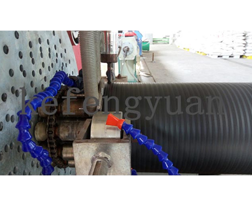 The extrusion line is mainly for producing large diameter hollow wall winding pipe. Large diameter winding pipe(inner diameter from150mm-3000mm)has high ring stiffness and high brunt intensity with special structure. It can be used for approximate 50 years and has many advantages such as low cost assembly and easy operation, withstanding pressure, corrosion resistant such as acid, alkali and salt etc, It is becoming as a replacement of cement pipe and iron pipe. Nowadays, it is being widely used as sewerage and drainage pipe.