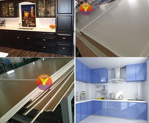 PVC kitchen cabinet board is pvc or crust foam board or Celuka foam board. Smooth, light weight , high density, high hardness , moisture-proof and waterproof , mildew proof and anti-corrosion , non-toxic and no benzene , green products , not easy to deformation resistance to compression. PVC kitchen cabinet board (Chevron board or Andy board PVC high, hardness white crust foaming board) household decoration: bathroom cabinet board, furniture board, household decoration board, all kinds of household of the shelf. PVC kitchen cabinet board can be embossing, laminating, and printing, thermal transfer printing and other second secondary operations.