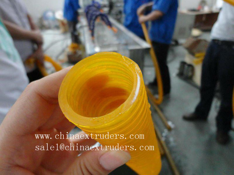forming unit.a cooling tank and a coiler winder. The wall of pipe is soft PVC and the rigid PVC