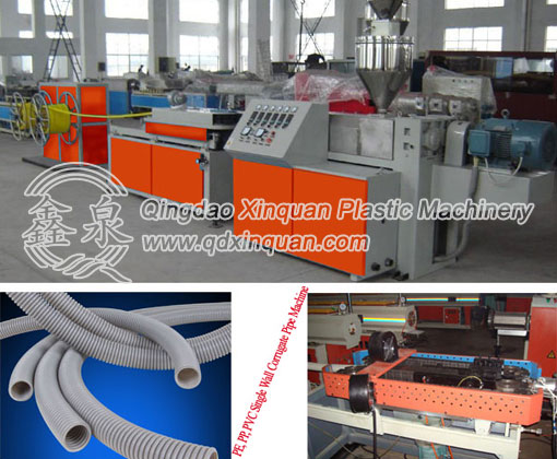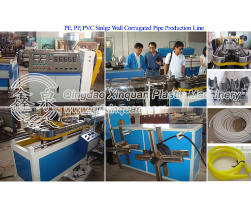 The PVC, PE single wall corrugated pipe has the advantages of high-temperature resistance, corrosion-resistance, anti-wear and high tenacity; the pipes are mainly used for electricity wire sleeve, wire sleeve in cars, protection wire sleeve, machine tool, food packaging machines, electrical mobiles, engineering installation, lamps and lanterns, automated instrument, etc.