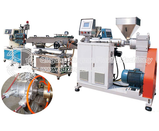 This machine is mainly use for manufacture the PVC/PP/PE, etc plastic soft medical use pipe, this machine could make the single pipe, single color pipe, double same diameter pipe, colorful same diameter pipe….. this machine main extruder and mark extruder all use conversion frenquecy governor, so the output is steady. The cooling bath could control the water temperature and level.