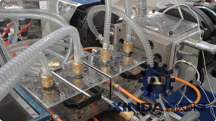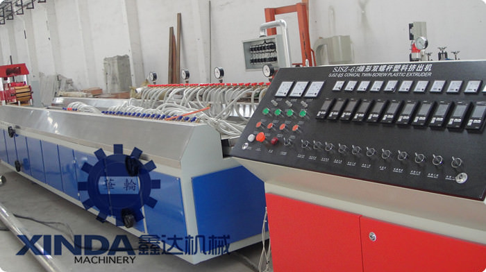 1.Extruder: adopting conical twin-screw extruder, unique designed screw, realizing shorting plasticizing time, good compounding and excellent plasticization.