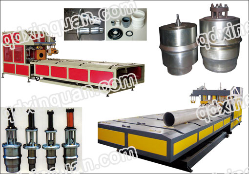 SGK series automatic belling machine is to expand PVC Plastic Pipes, includes models SGK16-50 double pipe automatic belling machine, SGK50-250, SGK110-315, SGK160-400 and SGK315-630 full automatic belling machines, 50-250 semi-automatic belling machine. The belling machines can be used independently and on-line with the extrusion line; the share of belling is R shape and straight type. It can expand water supply and drainage pipes of a variety of specifications from 0.6Mpa to 1.6Mpa, after belling, the pipes are cooled by a powerful air or water, makes sure the belling pipe does not easily get deformed. The whole electrical Mitsubishi PLC, Taiwan Willen touch screen control, production process without human interference.