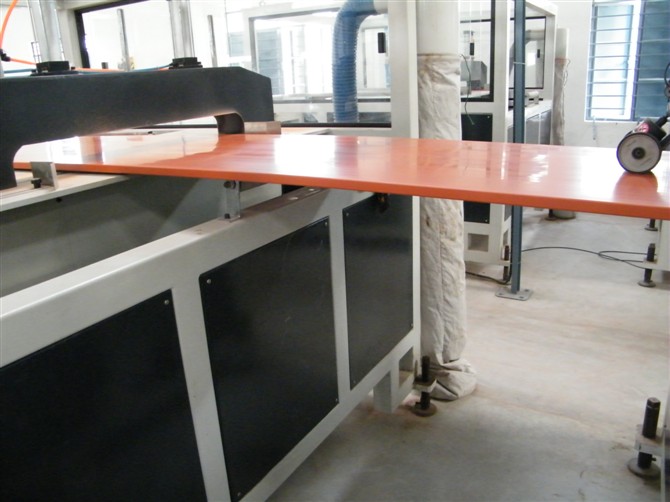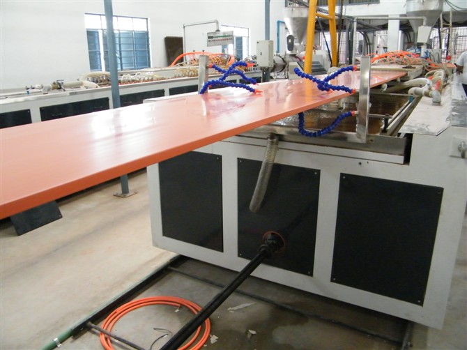 The production line is our company with foreign advanced technology, combined with the actual situation in China research and development, mainly for the PVC profiles of production, change of different size molds can produce such as window profile, PVC panel, PVC trough, PVC flooring and other products, total installed power of 48kW, the largest size 600X60mm.