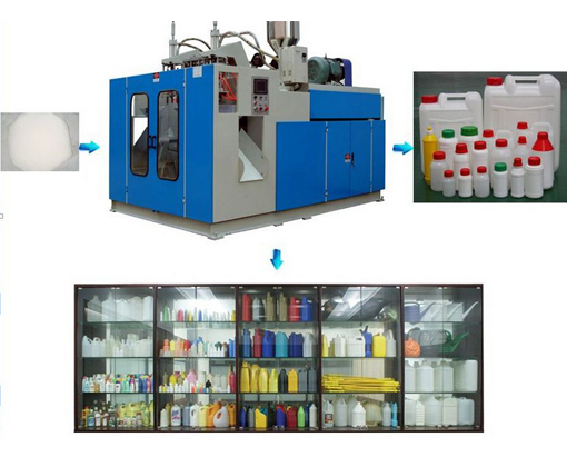 QJB65D Jerry Can blow moulding machine is applied to produce hollow containers of various shapes including chemical barrels, toolbox, pesticide bottles, oil bottles, wide-mouth bottles, automobile parts, household appliance and daily necessaries. It is suitable for many materials, including PP PE etc.