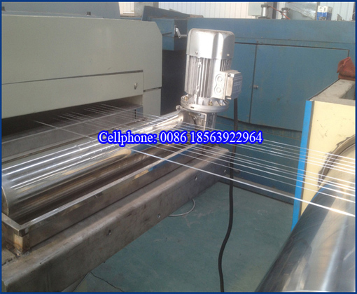 With PET granules or 100% PET bottle fakes material, to produce various specifications of monofilament. It consists of dehumidifying and crystallizing system, extruder, filter, melt pump, mould, haul-off, oven and winder, etc.