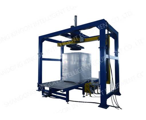 Rotary arm stretch wrapper is a machine that arm rotates around the load, specially for unstable or very high loads and extremely heavy loads because the pallet can be placed on the conveyor line under the wrappers.