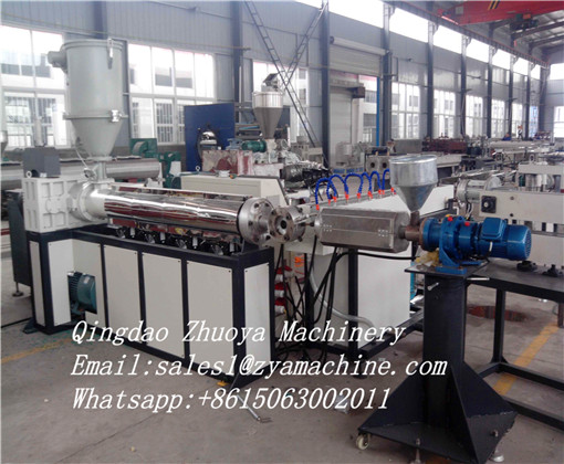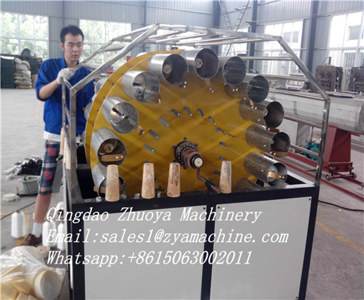 The line is suitable for the production of PVC fiber reinforced pipe.This kinds of pipe is made of three layers structure. The inner and the outer layers will be made of PVC plastics and the middle layer is made of terylene fiber reinforced net. The pipe is suitable for the conveying of corrosive gas or liquid. It can be widely used in the fields of machinery, coal mine, oil, chemical plant, agricultural irrigation, building, solar water heater, coal gas pot, etc.