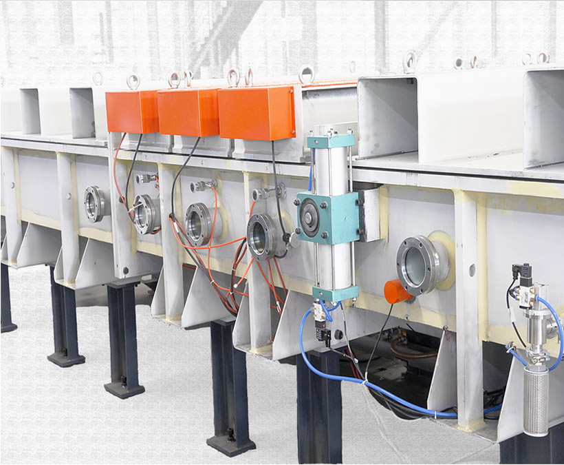 Sputtering" is a vacuum process used to deposit very thin films on substrates. The large area horizontal on-line sputtering system is designed to continuously coat the metallic or compound layers on glass sheets for the production of reflective glass. The machine is fully automatic controlled and glass is continuously moving and coating from one end of the machine to the other. The available film series are solar control reflective glass, Low-e glass and mirror for a wide variety of commercial and scientific purposes.