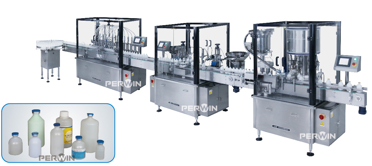 Automatic Unscrambler > Automatic Air Cleaning Machine > Automatic Fluid Filling/corking Machine > Automatic Cap Rolling Machine > Automatic Labeling Machine
