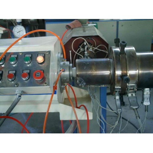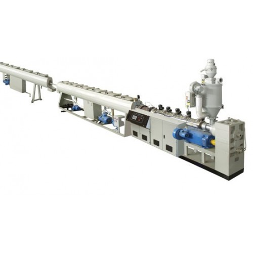 The series production line including single-screw extruder, pipe die, vacuum calibrating water tank, spray cooling water tank, hauling machine, cutter (or according to customers need to use the winder) and flip station.