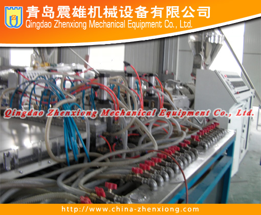 PVC WPC door board making machine from qingdao zhenxiong is composed of conical double-screw extruder,vacuum calibration table,haul off,cutter,foil machine,turn rack,etc.