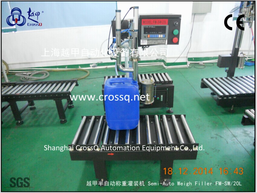 Weighing filling machine is made based on international technique, with filling and electronic weigh, electronic displaying functions. It is suitable for medium bucket filling of various kinds of viscous, non-viscous, corrosive and non-corrosive liquid.