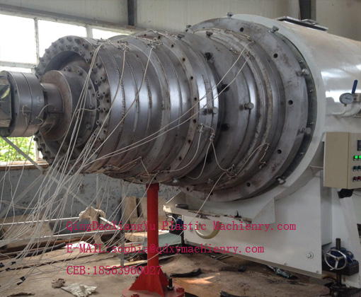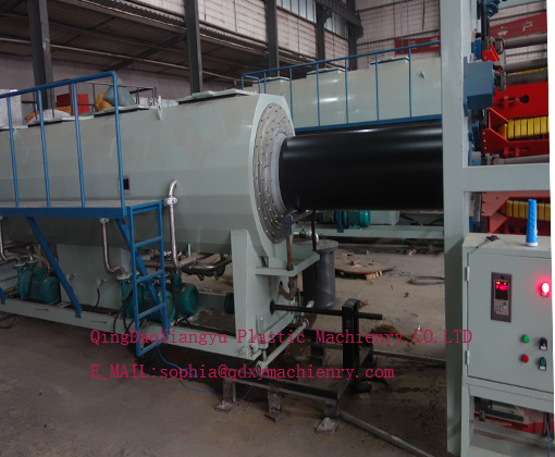 PE vacuum anti-corrosion thermal insulation pipe production line (φ90-φ2000), combined with years of manufacturing experience, is our new pipe production line that is researched, developed and improved with introduction of foreign pipe extruding technology. Consisting of extruding, mould, vacuum sizing, cooling, traction, cutting and discharge equipment, this unit has features of high automation and output, stable property, and long service life etc. Compared with pipe produced by internal pressure method, it makes great improvement in smoothness, bearing capacity, output and piping speed, and currently has become the most advanced and excellent anti-corrosion thermal insulation pipe production