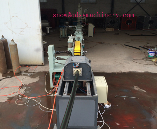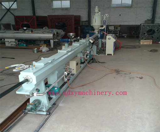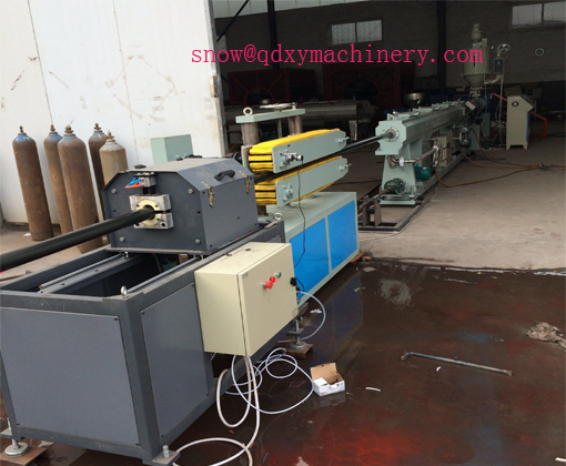 Mixed raw + additive → forced feeding conveyor→ conical twin screw extruder → Vacuum sizing tank → ink printing machine → Crawler tractor → cutting machine → stacker
