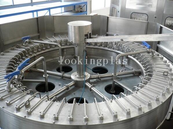 The blowing machine heats PET performs first and then stretch blow mold with the compressed air. With the development of beverage production line speed, fully automatic rotary blowing machine becomes the main trend, which is widely used by large and medium-sized beverage plants. Blowing machine consists of preform sorter, heating machine, rotary blow molding host, and electrical control systems. With the high productivity and high efficiency, rotary blow molding machine becomes the first choice of the middle, high speed production line, while the linear blow molding machine is chosen in the middle and low-speed production line.