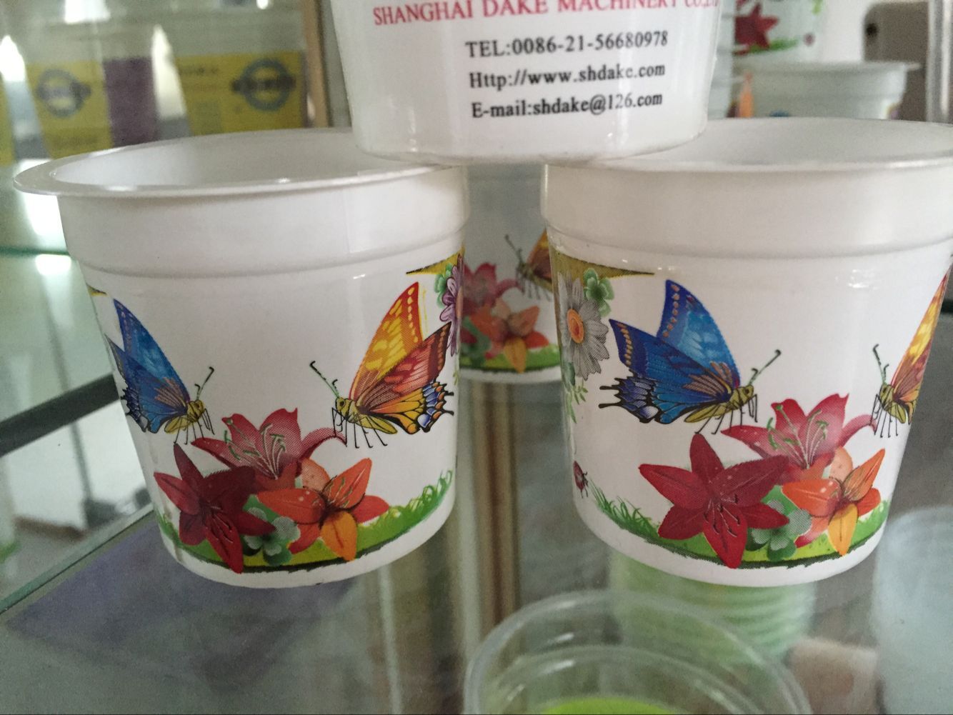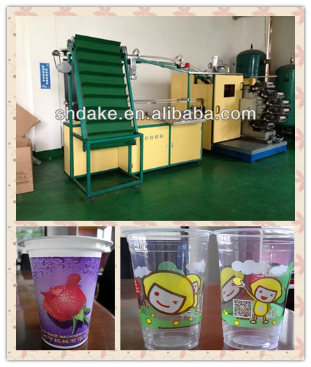 DAKE- Bent Offset Printer for cups is the type of machine which enter into cups by 45 degrees, and lay cups levelly in a line, standard printing. It is widely used for plastic cups, bowls, and barrel as well as pipes and so on. The whole device is composed of the feeding frame, in&out-cup frame, separate tanks, performance dealing, oil ink drying and main head of the machine etc.