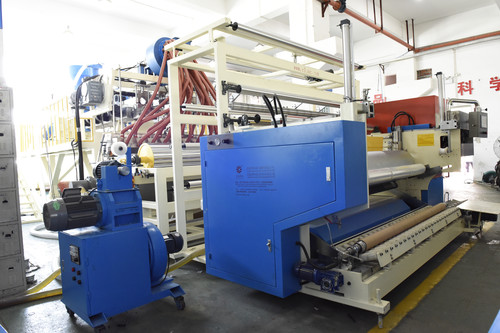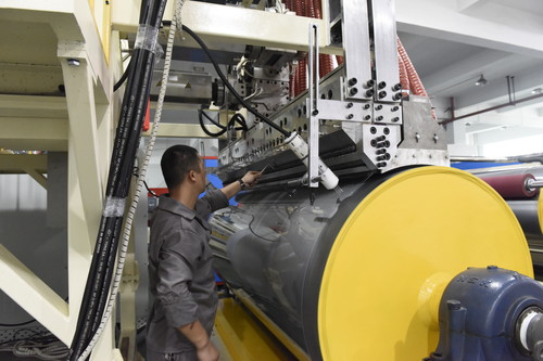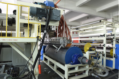 Designed for producing single/double-side self-adhesive three- layer / five-layer stretch film, cast stretch film, cling film, embossing film, protective film etc.,this machine combines with advanced technology in Europe and Ameria,which adopt Germany Siemens PLC system control,frictionless cylinder winding with tension adjustment settings,which is the tension closed-loop control system to achieve constant tension, is suitable for LLDPE, CPE, PP, PE material and so on.