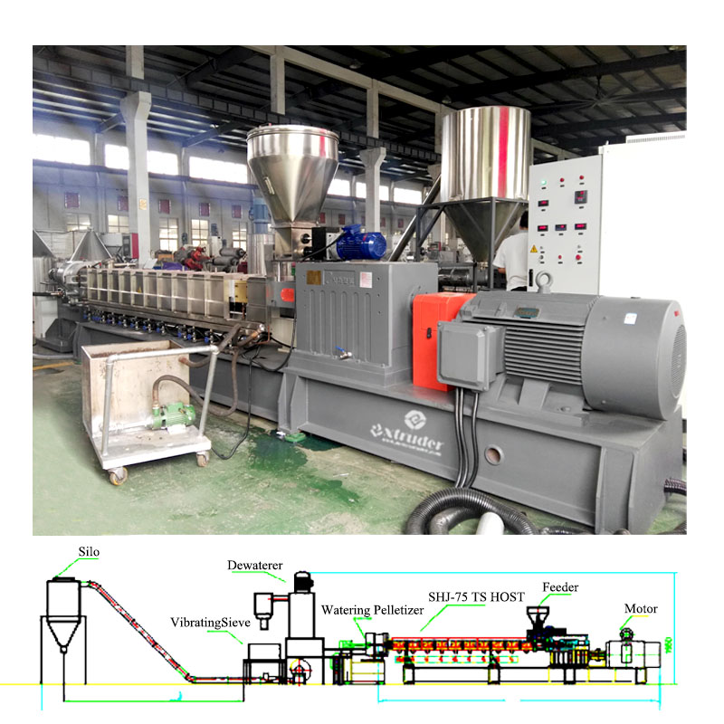 Filler masterbatch plastic extruder High percentage of CaCO3 powder added plastic extruder machine SHJ75G