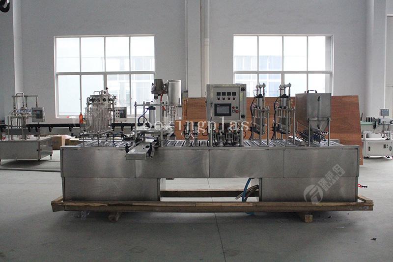 The machine is the automatic filling & sealing special equipment for all kinds of type plastic cups. It works automatically from loading cups automatically, filling regularly, setting cover by machine-handle, sealing for two times, carrying cups, pushing cups to transmission. It is suitable for yogurt, milk, salad, fruit-juice, beverage and other drinks and foods.